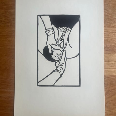 Tryk, Merete Jacobsen, Merete Jacobsen, 1985 vinterfugle, linoleumstryk, nyindrammet