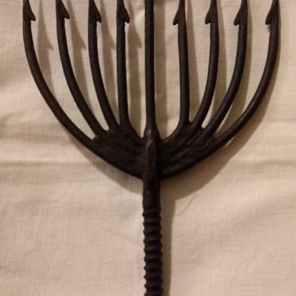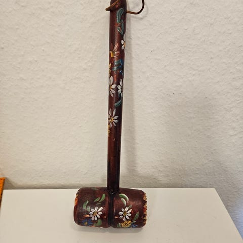 SKØN Sjælden antik håndmalet Musselmalet porcelæns Kødhammer med gevind-hul på siden