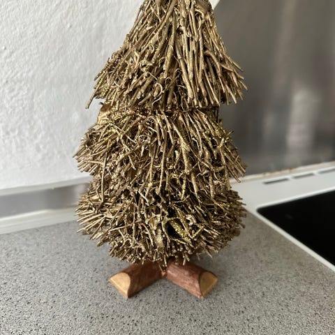 Stjernen måler 2 cm i diameter. Indvendig er der kegle af træ, så træet står stabilt. Perfekt til jule-landskabet, unik værtindegave eller blot bordpynt til jul/nytår. Frit valg mellem guld eller sølvstjerne. Pris pr. træ kr. 65 plus porto (de fremsendes i gratis, hård postæske) og er indpakket i cellofan - lige klar som den unikke værtindegave.