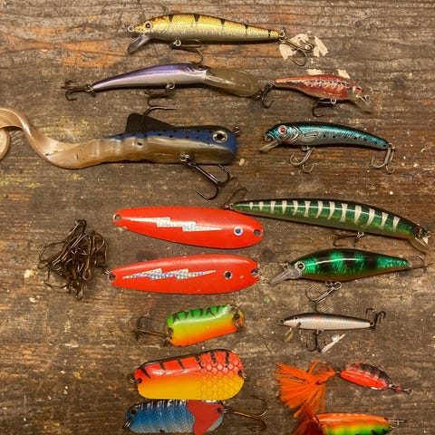Der følger et lille jighoved samt dropshot lodder på 5 og 7 g med.