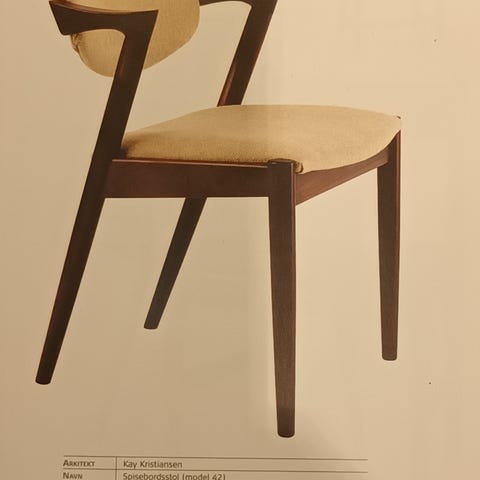 Kai Kristiansen, 31, Spisebordsstol, 2 stk Kai Kristiansen stole. Den ene i skai og den anden uden sæde.