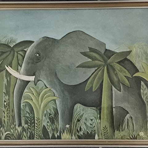 Tryk, Hans Scherfig, motiv: Elefanter i junglen, b: 65 h: 55