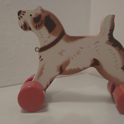 Legetøj, Træhest, hest på hjul, Fin gammel hest fra min fars barndom dvs. den er nok fra starten af 60'erne. Den måler ca. 21,5 cm i højden og hjulbræt er ca. 30 cm langt.
