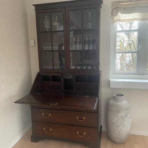 Chartol , kommode, skab, 200 år gl., b: 111 d: 84 h: 210, Flot gammelt mahogni chatol med fine udskæringer og ben greb i de små skuffer. Chatollet indeholder hjemlige rum. Det er fra starten af 1800-tallet. Der er lidt renoveringsarbejder, hvis det skal stå snorlige, derfor også den forholdsvis lave pris af et håndlavet snedker chatol at være.