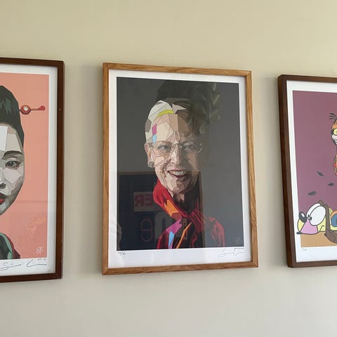 Tryk, H.M. Dronning Margrethe II, motiv: Skyer og Volden, b: 70 h: 100, Hende Majestæt Dronning Margrethe II maleri fra 1997 anvendt til indsamling til Balkan i 1999.