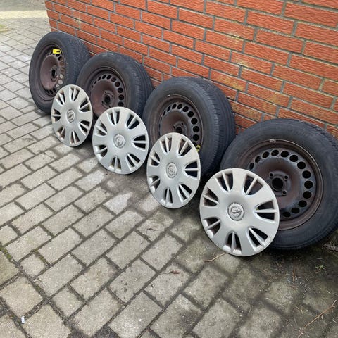 Stålfælge, 15", krydsmål 4 x 100, ET 49, sommerdæk, 2 mønster, fælge med dæk, Reservehjul fra Opel Astra g 1998