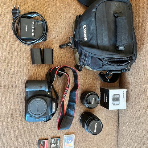 Canon, Eos 800D, spejlrefleks, 24,2 megapixels, Perfekt, Objektiver: 18 x 200, og 10 x 18. Hukommelse kort, lader, batteri, taske m.m. Indbygget wi-fi, blue touch. Sælges samlet.