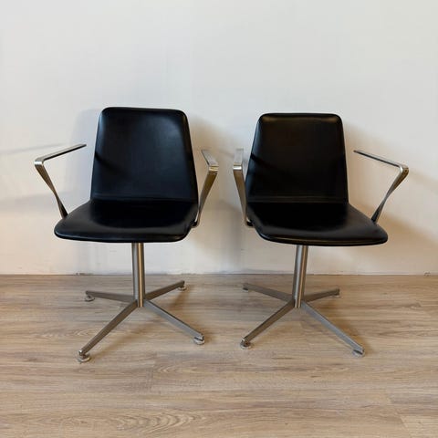 Jeg sælger denne elegante Paustian Spinal Chair 44 med armlæn og sort læderpolstring, designet af den anerkendte danske arkitekt og designer Paul Leroy. Stolen er en hyldest til skandinavisk minimalisme, hvor hver eneste detalje er gennemtænkt og udført med kompromisløs præcision.