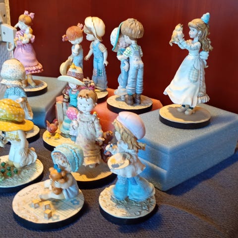Figurerne ligger i originale æsker, er kun taget ud i dag til foto, ligger i farvet skumgummi tilpasset figuren.