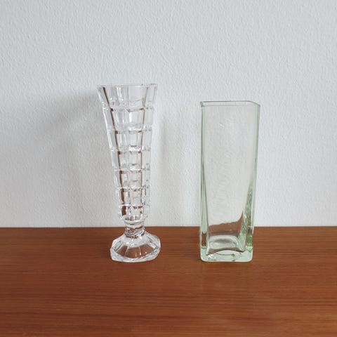 Lille glasvase i art deco stil Fransk pulverglas, Meget smuk minivase i art deco stil smuk, lysegrøn farve ("frosted"glas?) med guldstriber og lille bølgekant - kaldes også Fransk pulverglas, vintage