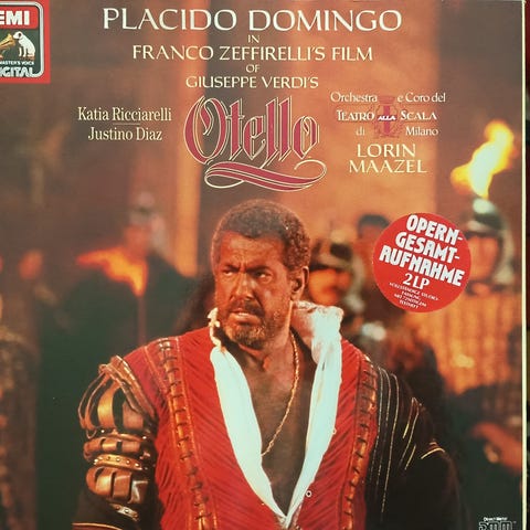 Opera, Giuseppe Verdi (1813-1901): Otello (1887) i et uddrag af operaen indspillet på tysk i 1967, uden tvivl pga dyrkelsen af Wolfgang Windgassen. (en af de største Wagnertenorer, der her kan bruge sit fantastiske talent på den tenorrolle, der kommer tættest på den højdramatiske tenor i Verdis repertoire. Teresa Stratas (f. 1938) er Desdemona og Dietrich Fischer-Dieskau (1925-2012) er Iago. Otto Gerdes dirigerer.