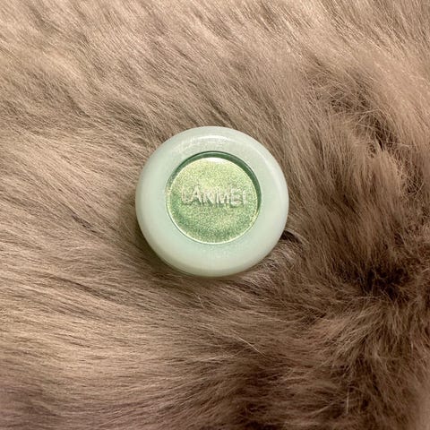 Æsken er en smuk mørkebrun blank æske med en mørkebrun fløjlspose til. Applikatorerne i æsken har aldrig været brugt, og selve øjenskyggen har kun været brugt ganske få gange.
