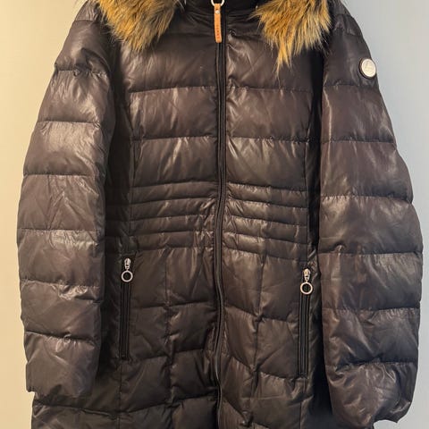 Dynejakke, str. 44, Lutha, Mørk, Polyamid/polyester, Næsten som ny, Luhta kvalitets dynejakke med lynlås og vindspære,aftagelig krave med ægte pels lommer, flere lynlås,