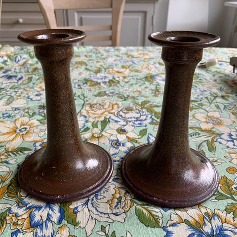Stentøj, lysestager , Knabstrup, to fine små lysestager af stentøj i lækre grønne nuancer