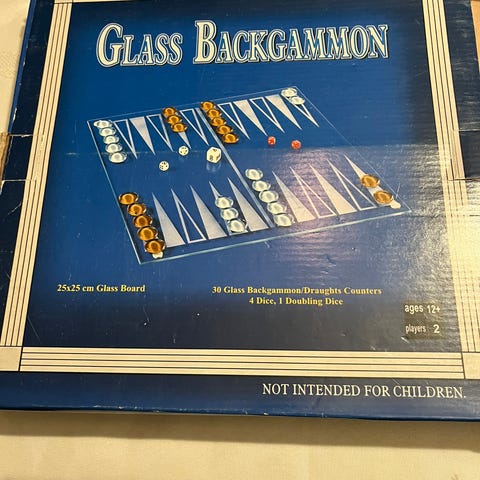 Backgammon, Strategispil, brætspil, NYT Backgammonspil i glas. Nypris 100 kr på udsalg