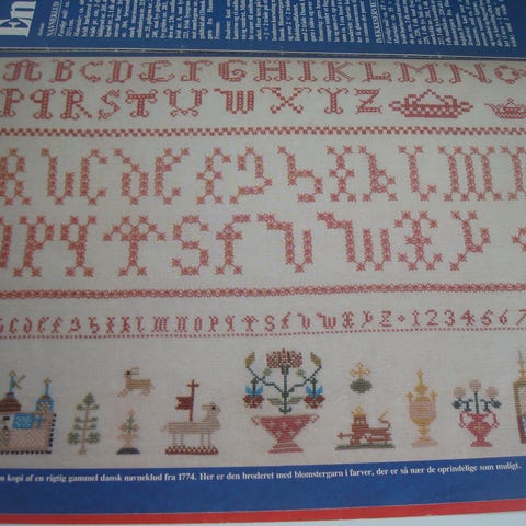 Broderi, Navneklud, I fin stand fra røgfri hjem. Måler 35x35.