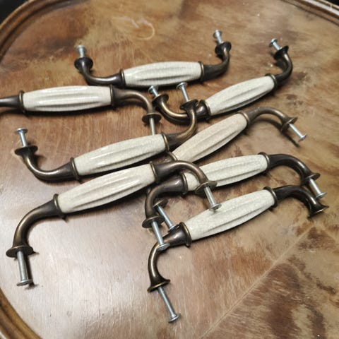 Et gammelt hvidt porcelænshåndtag (10,5 cm) uden kæde