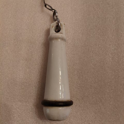 Et gammelt træhåndtag (8 cm) med kæde.