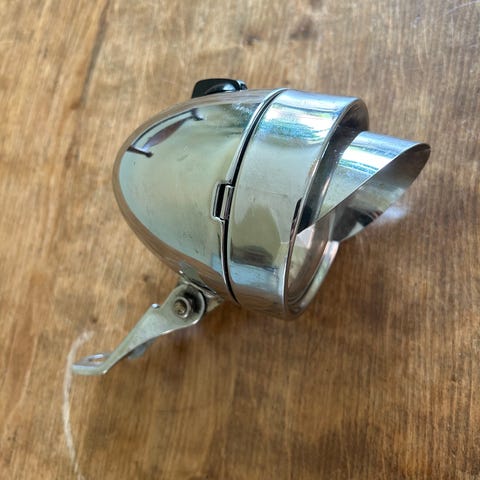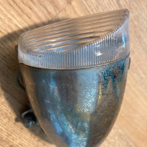 Funktionaliteten er ikke tjekket, da den har siddet til pynt på vintage cykel