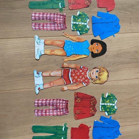Ret sjældne. Jeg tror den ene har celluloid hovede og den anden papmache hovede.