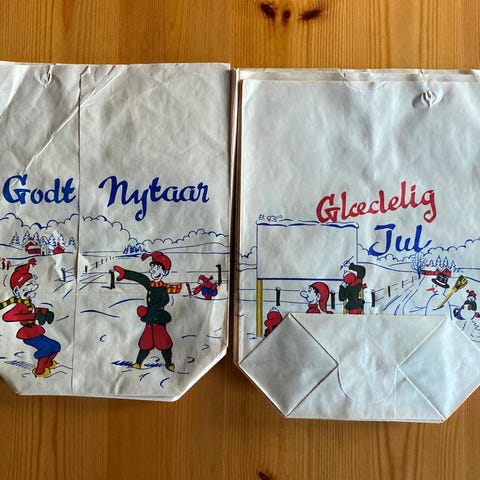 Gamle juleslikposer. Glasbrikker.