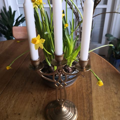 3-armet lysestage, Smuk 3-armet lysestage i messing - perfekt stand.