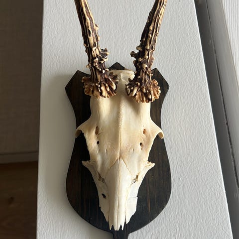 Stort rensdyr gevir med pels på.