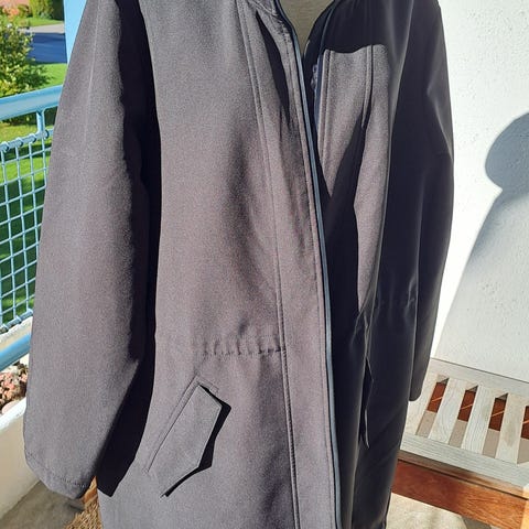 Den er flot, varm med aftagelig hue og pels kan man også tage af. Hue er forret med sort pels inde i så dejlig varm.