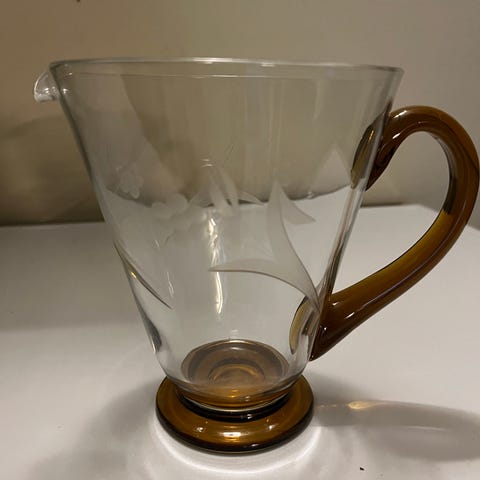 Glas, Glaskande, Lis - Kastrup Glasværk, 17 cm høj. Hle og pæn stand. Farven på fod og hank er nærmest olivengrøn.