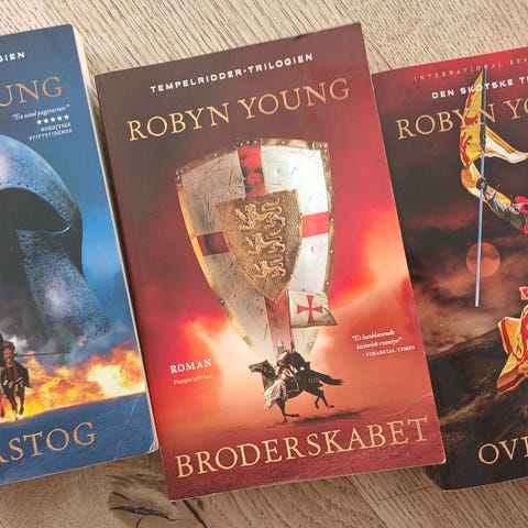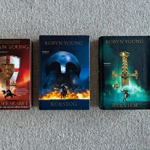 Korstog, Broder Skabet og Rekviem, Robyn Young, genre: eventyr, Triologi indbundet og med smudsomslag, bøgerne er på dansk, se billede...