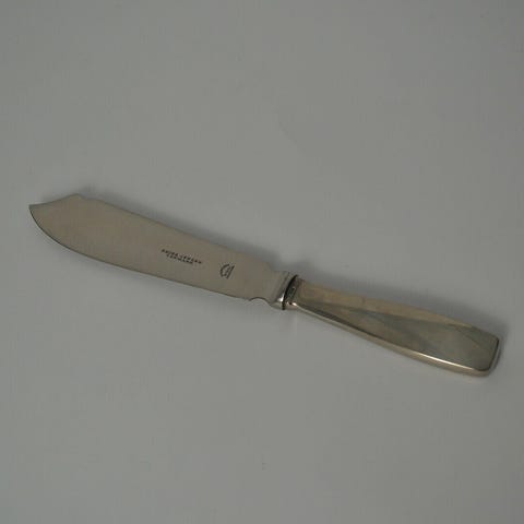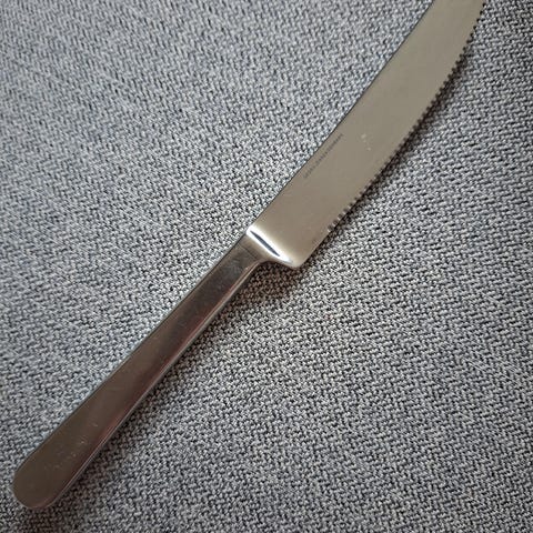 Flot lagkagekniv fra Georg Jensen. Arne Jacobsen design, rustfrit stål, 24,5 cm, designår 1957. Er som ny, og er en billig og perfekt gave enten til dig selv eller til en du holder af.