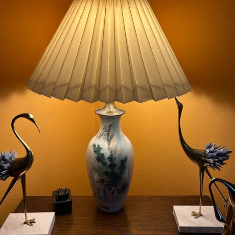 Bordlampe , Kinesisk, Top stand. Ingen brugstegn. Kinesisk porcelæn. Messing fatning. H: 37cm Ø: 26cm kan sendes. Betaling MP