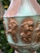 Super skøn stor gammel kande - vase med fineste relief motiver hele vejen rundt
