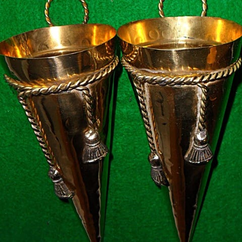 Smukke gamle tunge messing Kræmmerhuse med udsmykning - klar til ophæng