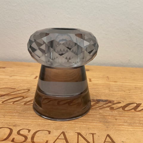 Lysestage med blondekant, Speedtsberg, FLOT ENKEL LYSESTAGE MED EN BLONDEKANT RUNDT. STAGEN ER I MESSIN FARVET METAL.