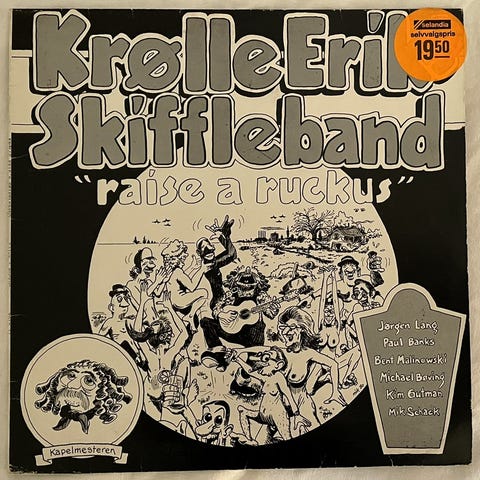 "Raise A Ruckus" Udgivet 1980 "SKIFFLEBAND med Paul Banks, Bent Malinowski, Michael Bøving, Kim Gutman, og Mik Schack, som også har tegnet cover.