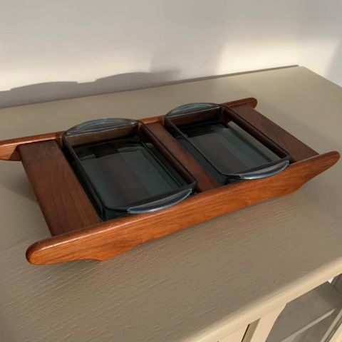 Fad i teaktræ, Meget smukt teaktræsfad - det ligner meget Jens Quistgaard Kano (canoe) fad), men der står ikke noget i bunden - det er dog smukt og yderst dekorativt alligevel - mindre brugsspor - se billederne.