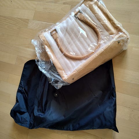 Tasken er ny, den har aldrig været brugt, men der er desværre ligesom et skjold på den ene side. Se billede. Sælges derfor billigt.