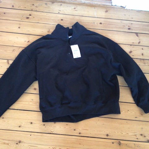 Sweater, Zara, str. S, Råhvid , 100% bomuld , Ubrugt, En lys- råhvid, vrangstrikket sweater med rund hals fra ZARA. Størrelse S.