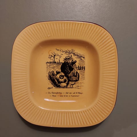 Knabstrup keramik med Storm P tekst