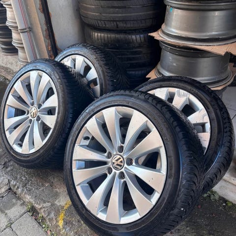 Alufælge, 17", VW, 205 / 55 / R17, krydsmål 5 x 112, ET 42, sommerdæk, Goodyear, 50% mønster, fælge med dæk,