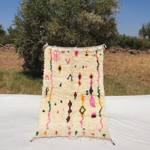 Gulvtæppe, b: 150 l: 250, Meget smukt håndlavet marokkansk gulvtæppe i uld og bomuld.