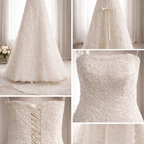 Passer til en brud på ca. 164 cm + sko med en lille hæl.