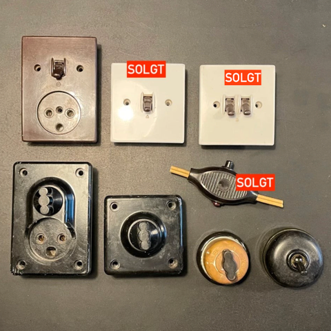 ....for at se mine andre annoncer med gamle og retro stikkontakter og afbrydere, hvis du skal i gang med at renovere dit hus eller lejlighed