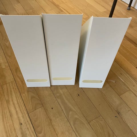 1 Stk. Hvid Magasin holder fra Ikea. Der er påsat et apple klistermærke.