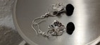 Rhodineret, forsølvet metal øreringe med krystal perle, sort