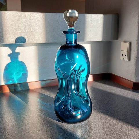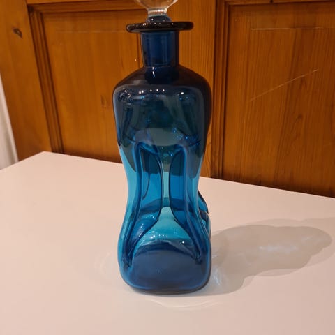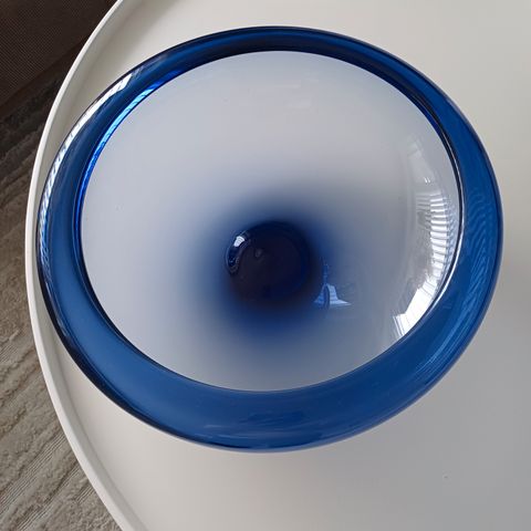 Blå Glas Låg Krukke, Holmegård, Blå Holmegård Glas Låg Krukke