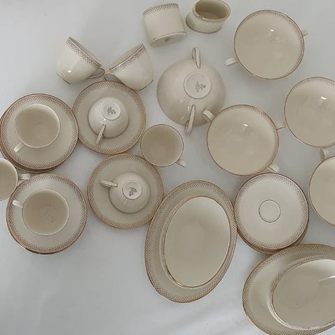 6 Krus + 6 Undertallerkner = kr. 250,-
