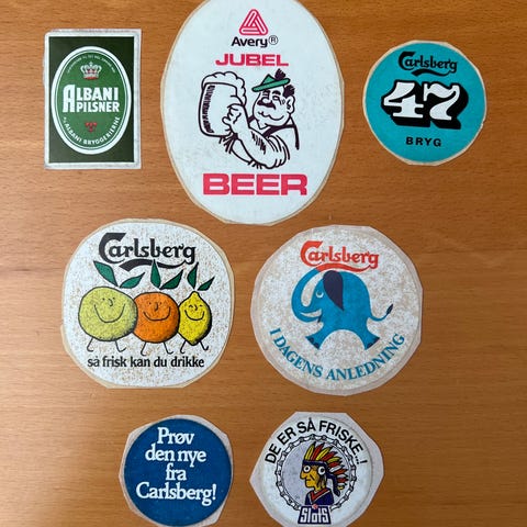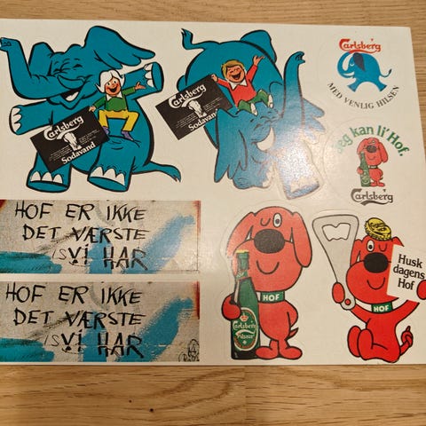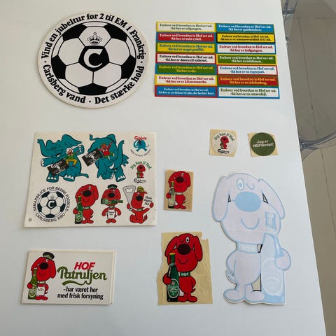 Fuldt ark med 8 Carlsberg klistermærker fra 90'erne.