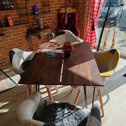 4 virkelig vedligeholdte stole sælges samt et solidt og robust bord fra NUUK.